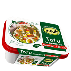 Se obţine din lapte de soia, care se încheagă cu clorură de calciu şi, pentru diversificarea gustului, se adaugă seminţe de chimen, vârfuri de mărar, fulgi de ardei. Astfel, rezultă Tofu de la Inedit, un produs refrigerat, preparat din ingredinte naturale, atent selecționate, bogat în proteine și celuloză, singura brânză ce nu conține colesterol. Se folosește la aperitive, paste tartinabile sau salate.